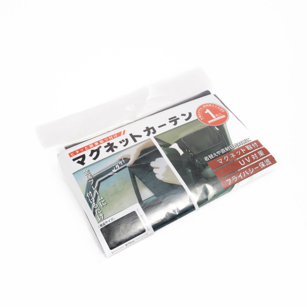- 特徴: 車窓上部の金属フレームに簡単着脱できるマグネットカーテン